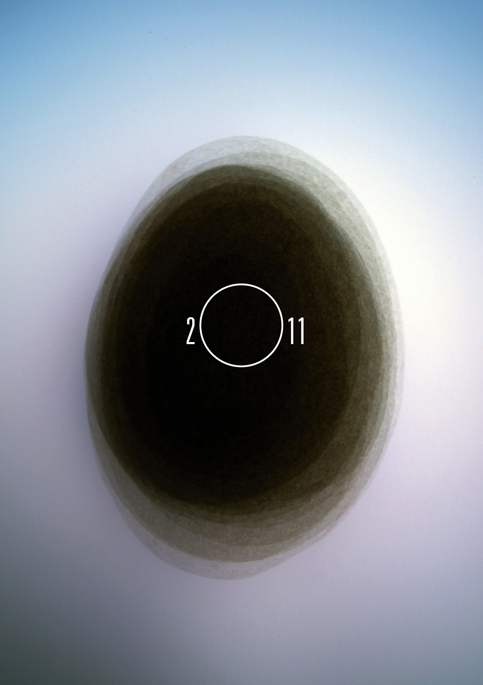 ⚫ "Vœux 2011" — un dibujo creado mediante la superposición de fotografías de callaos encontrados en la playa de San Felipe (Gran Canaria), sobre un fondo blanco (enero de 2011).