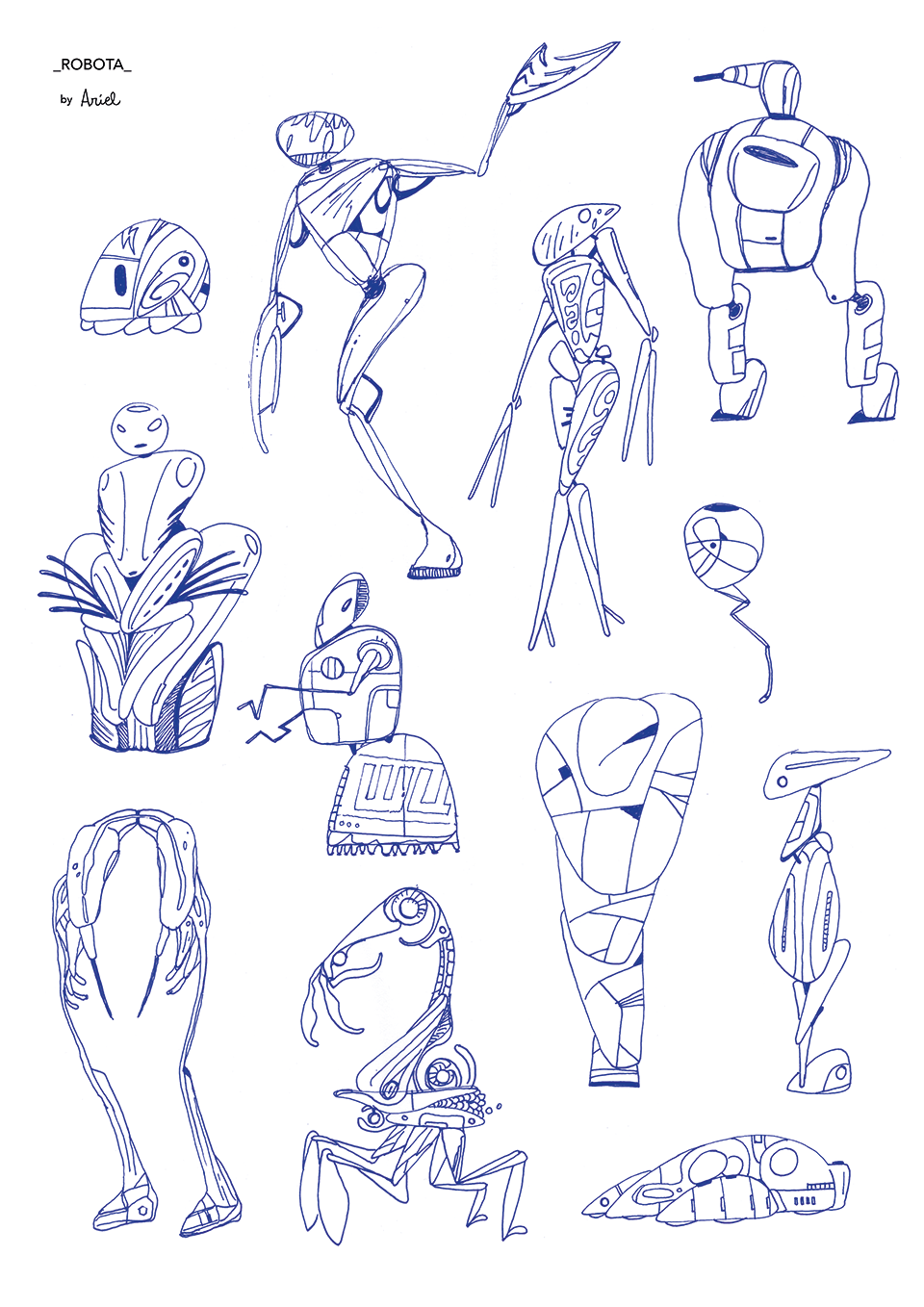 ⚫ "Robota" — varios robots, dibujos con bolígrafo (abril de 2014).