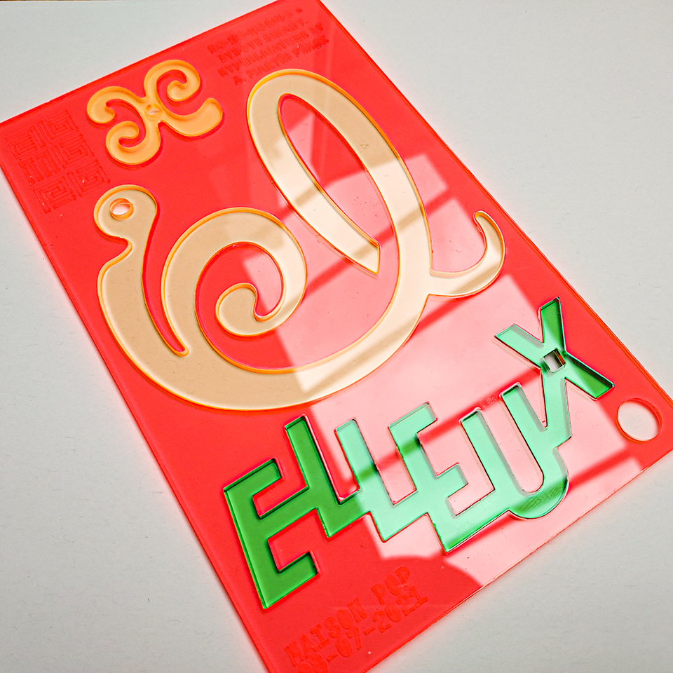 "No no normo" — Results of the workshop conducted by Bye Bye Binary* at the Maison Populaire de Montreuil. Laser-cut translucent plexiglass and machine-cut adhesive vynil (July 2021).